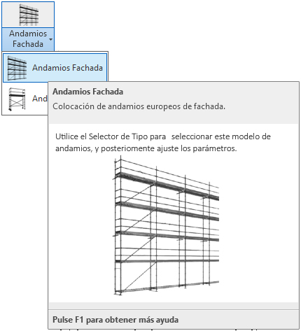 2. En la cinta de opciones de UrbiCAD, haga click en el tipo de Andamios Fachada desde el selector de tipos (ver imagen anterior).