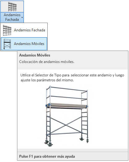2. En la cinta de opciones de UrbiCAD, haga click en el tipo de Andamios Móviles desde el selector de tipos (ver imagen anterior).
