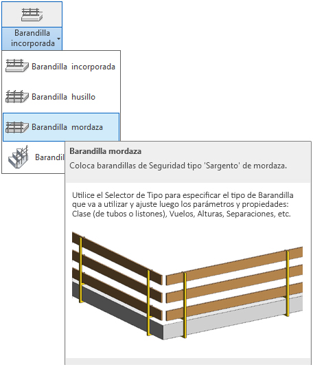 2. En el menú de UrbiCAD, haga click en Barandilla tipo sargento de mordaza desde el selector de tipos (ver imagen anterior).