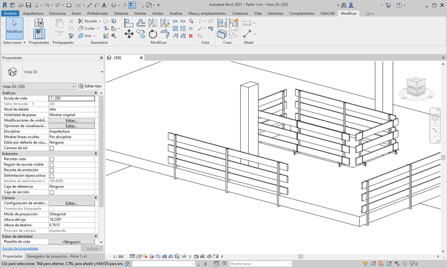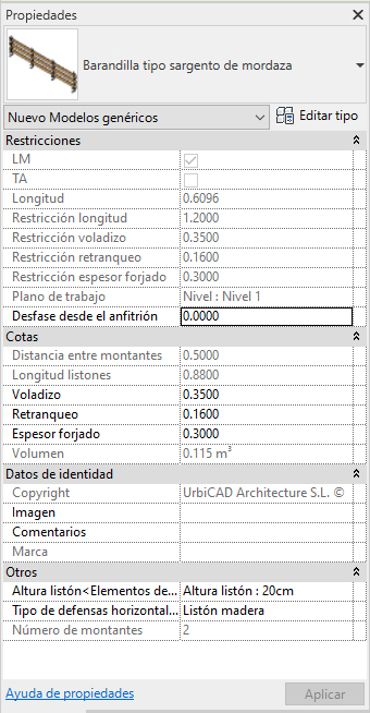 3. Seleccionamos desde Propiedades, la nueva barandilla a cambiar, y ejecutamos la acción.