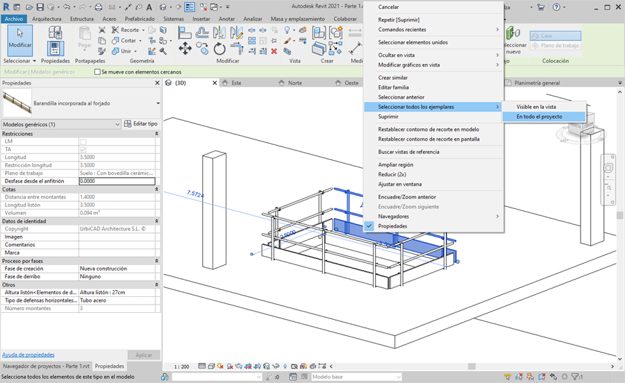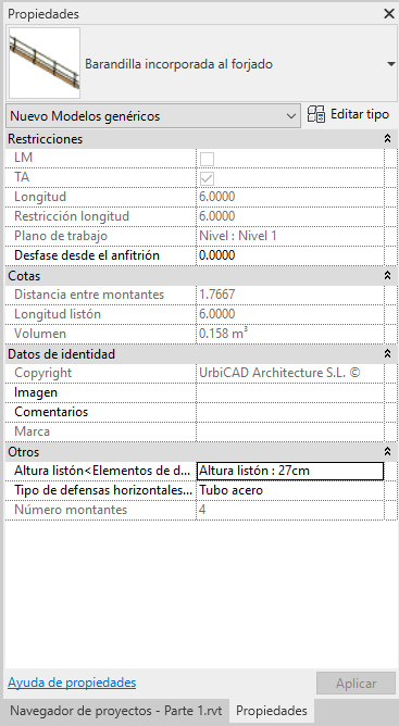 3. Seleccionamos desde Propiedades, la nueva barandilla a cambiar, y ejecutamos la acción.