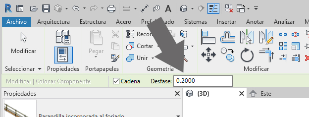 4. Asigne el valor de desfase deseado de la barandilla con relación al canto del forjado (ver imagen) por ejemplo 0,2 metros si está dibujando en metros.