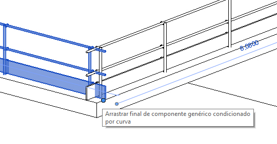 7. Cuando la imagen de la línea previa se encuentre en la posición deseada del forjado, haga click para colocar la barandilla.