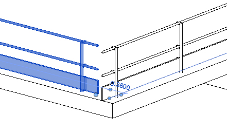 6. Coloque el cursor sobre el canto del forjado para mostrar una imagen de la línea de colocación de la barandilla, tal como observa en la imagen inferior (corrija el desfase si procede):