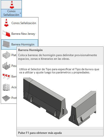 2. En el menú de UrbiCAD, haga click en el tipo de Barrera New Jersey desde el selector de tipos (ver imagen anterior).