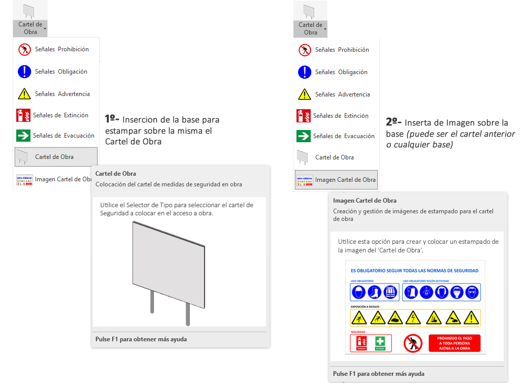 Otro modo, si solo quiere insertar el 'Cartel de obra' en vista Planta, es simplemente seleccionar la opción de 'Insertar imagen cartel de obra'.
