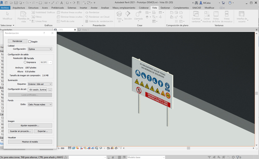 Por ello y para ver el resultado, se procede al renderizado rápido, tal como se observa en la imagen:
