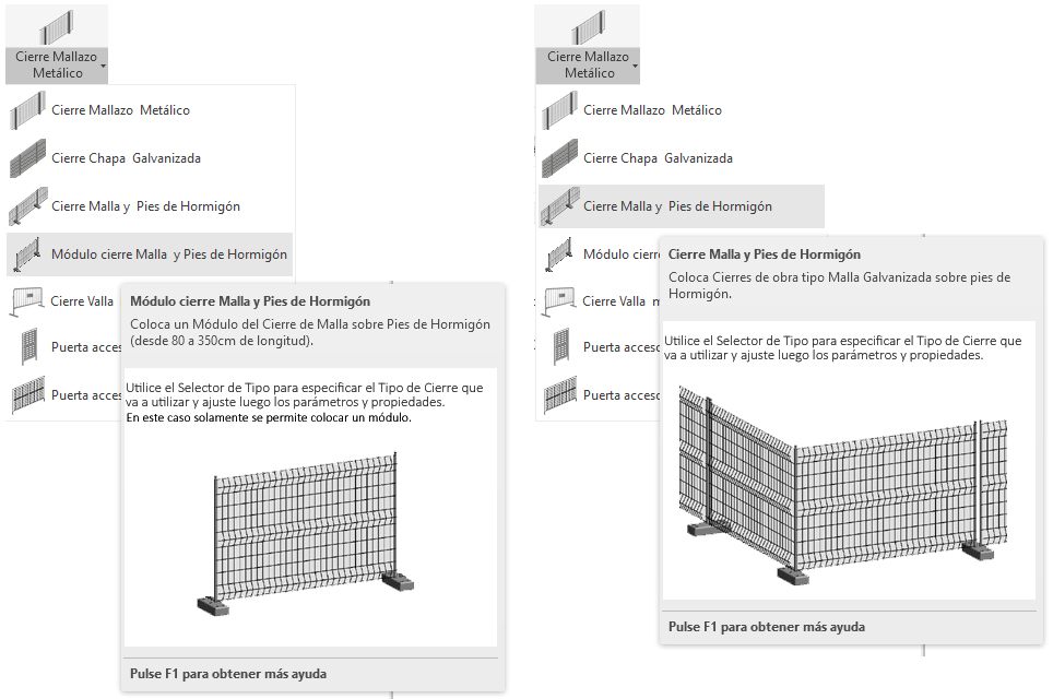 2. En el menú de UrbiCAD, haga click en el tipo de Cierre Malla y pies de hormigón desde el selector de tipos (ver imagen anterior).