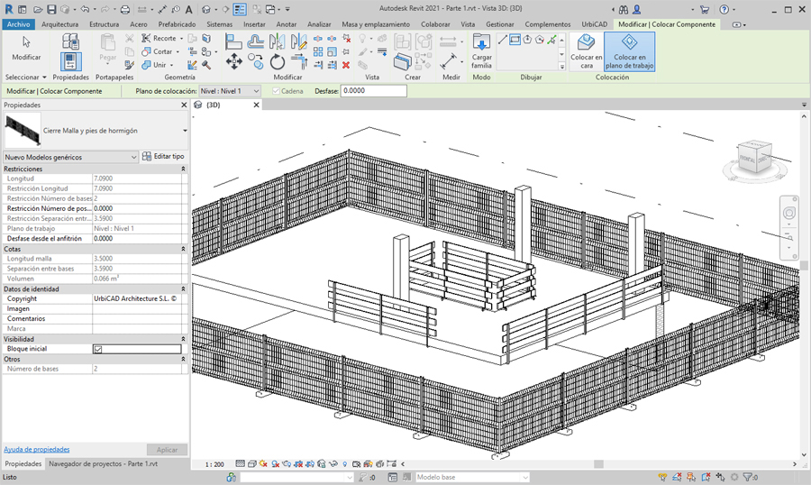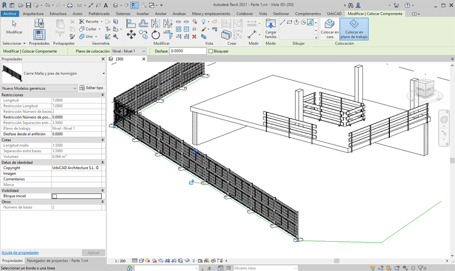 No olvide para el segundo y siguientes tramos el desactivar desde Propiedades: Visibilidad 'Bloque inicial', para que los sucesivos tramos a partir del primero no se solape en las esquinas los bloques que sirven de pie del cierre.