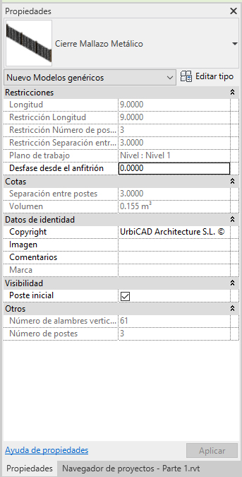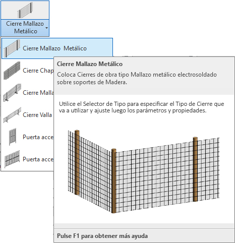 2. En el menú de UrbiCAD, haga click en el tipo de Cierre Mallazo Metálico desde el selector de tipos (ver imagen anterior).