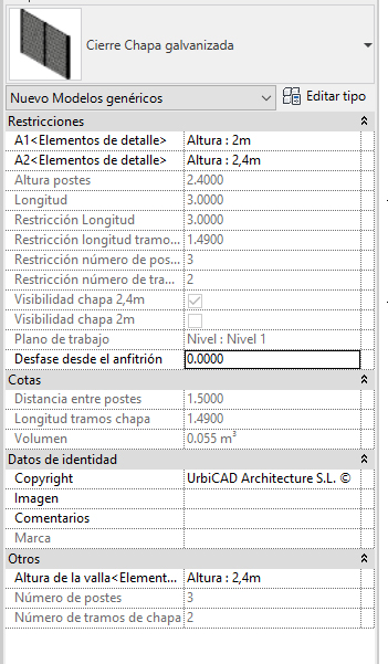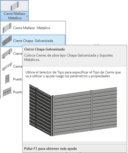 2. En el menú de UrbiCAD, haga click en el tipo de Cierre Chapa Galvanizada desde el selector de tipos (ver imagen anterior).