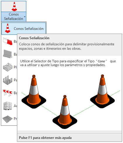 Utilice esta opción para la colocación de conos de señalización en sus proyectos de Seguridad.
