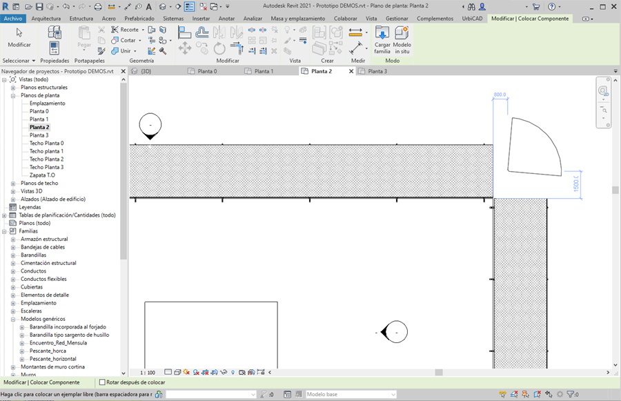 1. Abra una vista de planta o 3D. Si trabaja en 3D debe recordar que en 3D no se tienen los niveles definidos, y esto puede ocasionar que la colocación del encuentro en la esquina sea incorrecto.