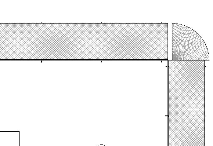 Es posible girar y colocar los encuentros de los paños de red ménsula cuando las esquinas son a 90º como hemos visto antes, pero también si son mayores o menores de 90º, ya que normalmente siempre habrá alguna esquina con estas condiciones, por ejemplo como las que se observan en la imagen: