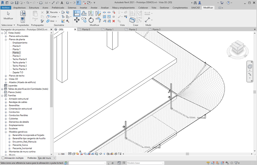 Un consejo: Si coloca encuentros a 90º en vista planta, le puede resultar más fácil designar la esquina superior del canto del forjado antes de haber colocado los tramos rectos de red.