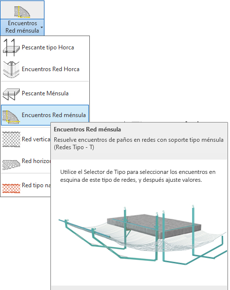 2. En el menú de UrbiCAD, haga click en el tipo de Encuentro Red Ménsula desde el selector de tipos (ver imagen anterior).