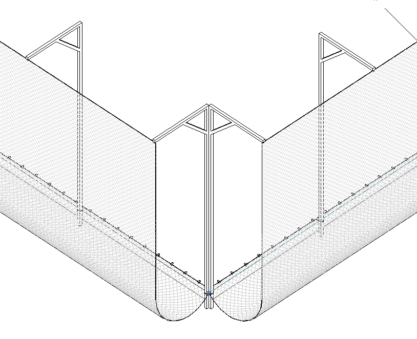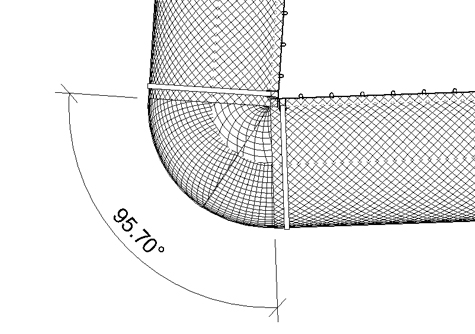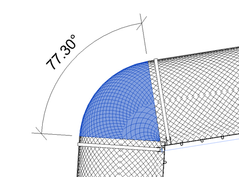 Es posible girar y colocar los encuentros de los paños de red cuando las esquinas son a 90º, pero también si son mayores o menores de 90º, que normalmente siempre habrá alguna esquina con estas condiciones, por ejemplo como las que se observan en la imagen: