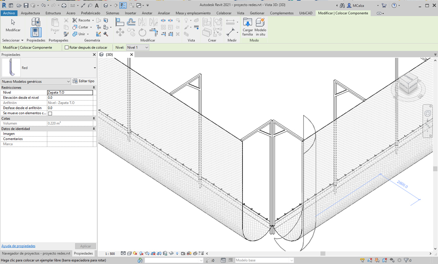 3. Asigne los parámetros del cuadro de Propiedades e inserte la red marcando el punto superior de la esquina del canto del forjado, tal como observa en la imagen inferior.
