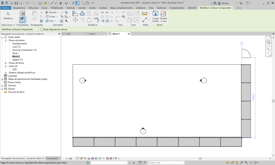 a) Colocar el encuentro de la red en vista planta o colocar el encuentro de la red en vista 3D: