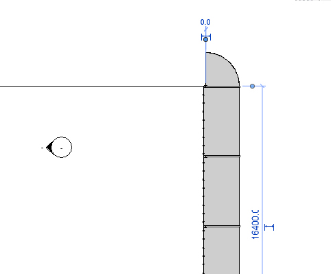 Incluso, si lo hace en la vista planta, en mejor que los tramos rectos de los tramos de red que se encuentran, no estén colocados. De este modo le será más fácil designar el punto (esquina superior del forjado) donde colocar los encuentros.