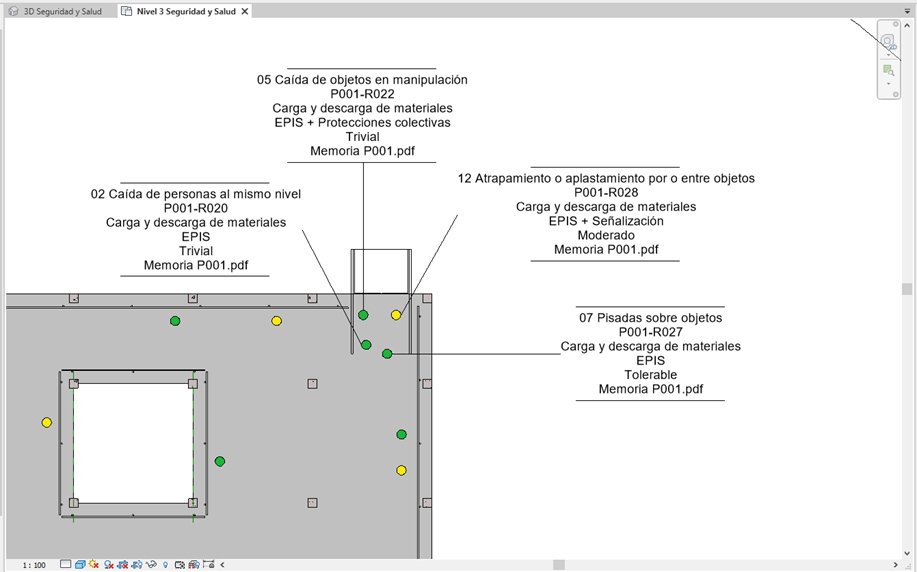 Estos riesgos pueden definirse mediante etiquetas dentro de los planos de su modelo BIM, tal como se muestra en la imagen: