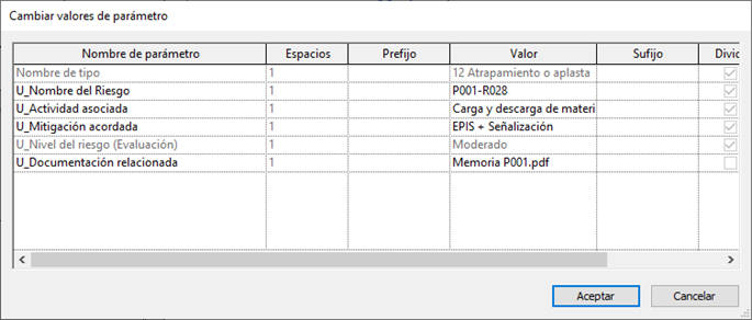 Si le resultase más cómodo, puede editar los valores de los parámetros a través de la etiqueta, obviamente dichos cambios se producirán también en el Riesgo y en las Tablas de Riesgos.