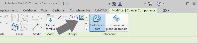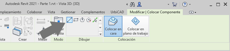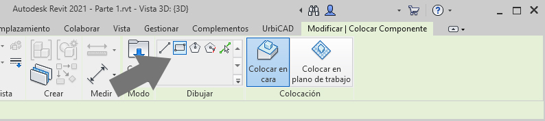 5. Puede colocarla seleccionando ahora en Dibujar uno de los modos de dibujar la marquesina (lo más cómodo es la opción de seleccionar línea tal como observa en la imagen inferior).