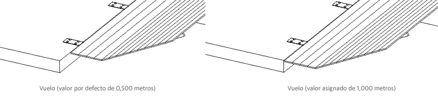 Los vuelos, al insertarse cada alineación de marquesina, tiene unos valores por defecto preparados para facilitar la colocación del encuentro y sin ajustar nada, se ajusten bien en la esquina.