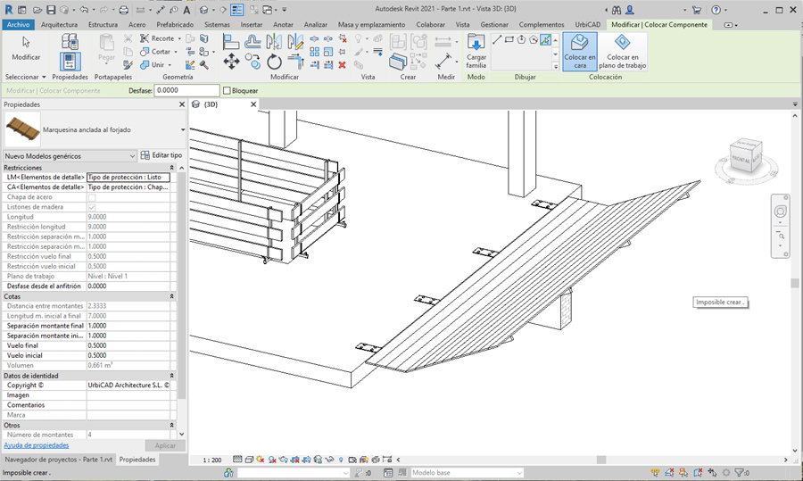 Si desde Propiedades ha ajustado correctamente los valores y materiales, podrá colocar la marquesina que se ajuste a sus necesidades.
