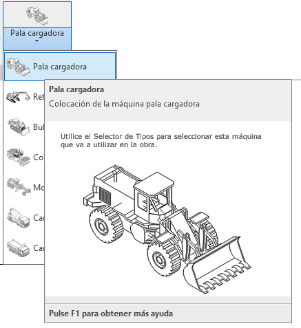 Modelar el diseñoElementos de Seguridad y SaludMaquinaria de obra Pala Cargadora Pala Cargadora Seleccione esta opción para la colocación en su modelo BIM de esta maquina de obra.