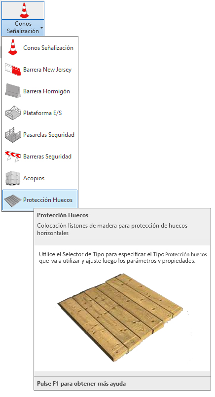 Utilice esta opción para la colocación de la protección de huecos horizontales mediante tablones de madera, en sus proyectos de Seguridad.
