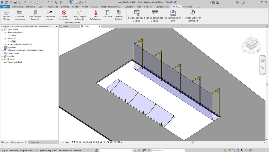 Cuando coloca una red, no hay ninguna diferencia entre seleccionar el canto de un forjado o seleccionar el canto de un hueco de interiores. Por lo tanto el proceso es el mismo, tal como puede apreciarse en la imagen inferior: