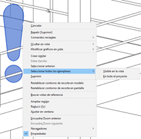1. Seleccionamos cada uno de los Riesgos o hacemos una selección múltiple, Botón derecho del ratón sobre el Riesgo > Seleccionar todos los ejemplares > Visible en la vista / En todo el Proyecto, tal como puede observarse en la imagen siguiente.