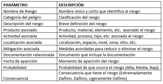 A excepción del parámetro de Nombre del Riesgo que se debe rellenar en cada inserción del componente, se recomienda rellenar el resto de parámetros desde Tablas de Riesgos una vez tengamos todos los riesgos insertados.