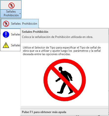 Seleccione desde el selector de tipos, este tipo de señales y dentro del tipo la señal correspondiente que desea colocar en el plano, tal como observa en la imagen: