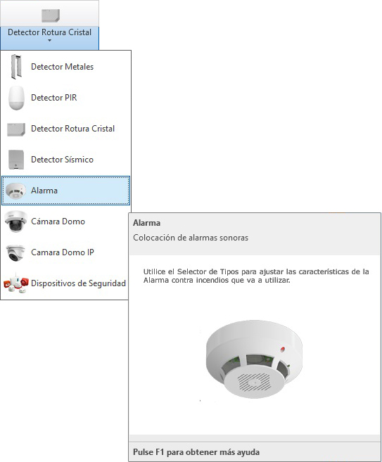 - En el menú de UrbiCAD Seguridad Integral y Autoprotección, haga click en Alarma (ver imagen anterior).