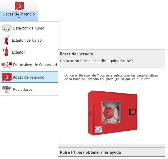 Seleccione desde el selector de tipos la opción de Bocas de Incendio, tal como observa en la imagen: