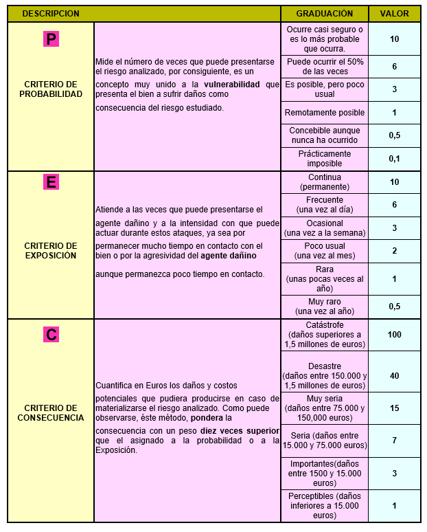 Irán disminuyendo los valores de los tres criterios analizados (P, E y C) y, consecuentemente, bajará el NIVEL DE RIESGO (R) del edificio.