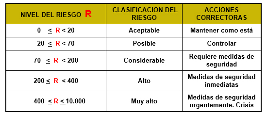 Esta fase tiene por objeto clasificar el riesgo en función del valor R obtenido en la evaluación del mismo y establecer las acciones correctoras a adoptar.