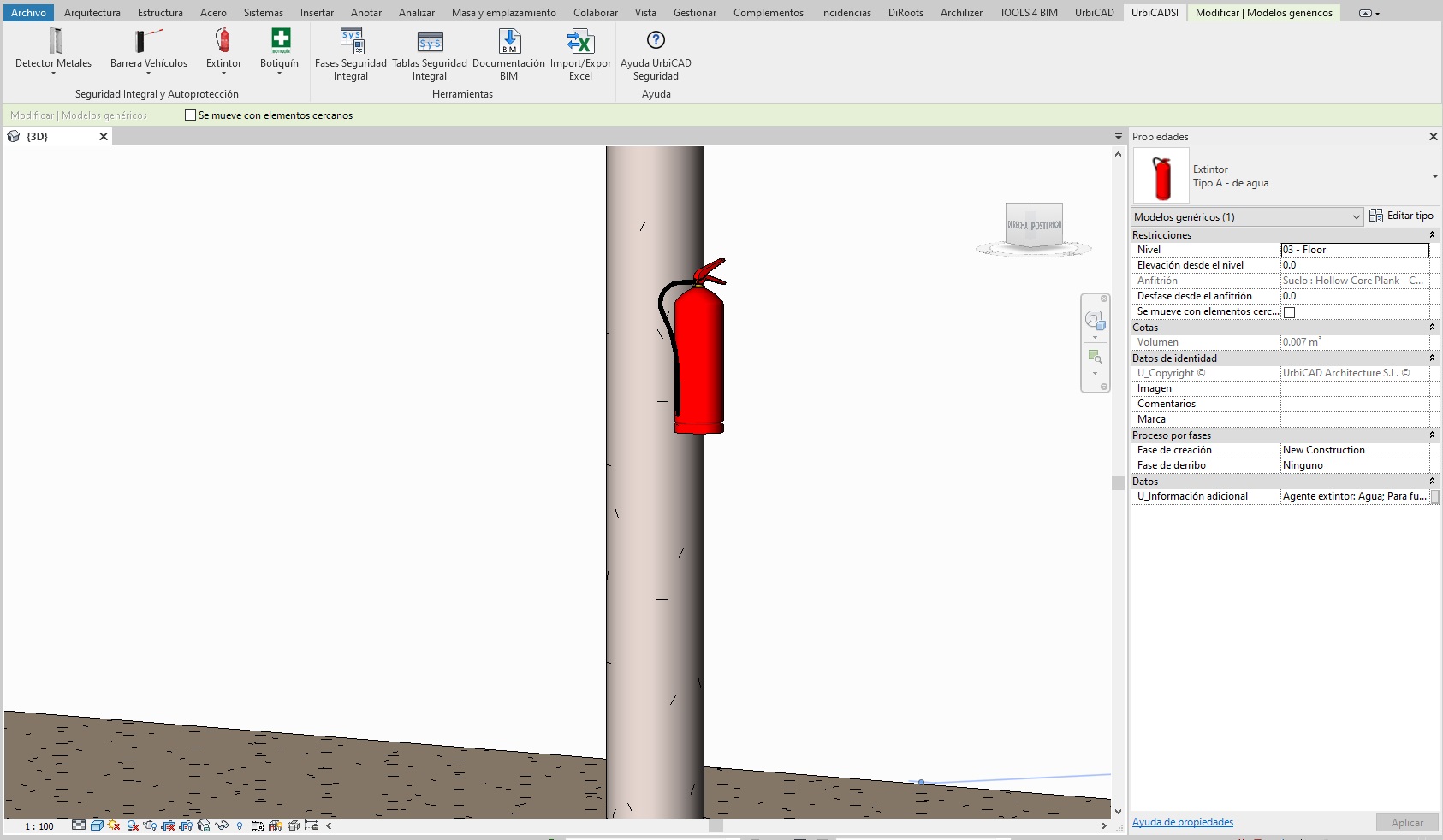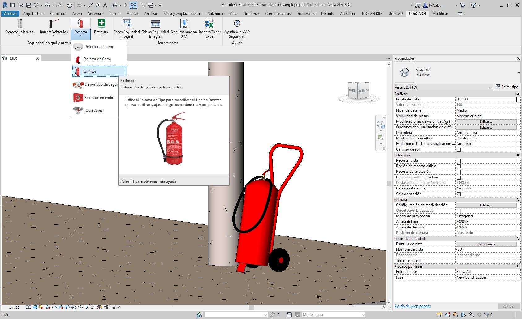 - En el menú de UrbiCAD Seguridad Integral y Autoprotección, haga click en Extintor (ver imagen anterior).