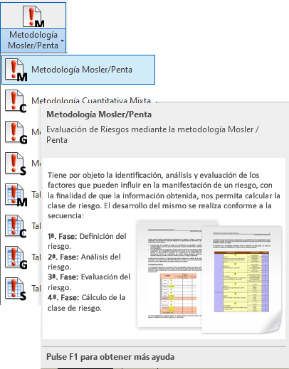 En este caso, se estudia la metodología que vamos a utilizar para el análisis de los riesgos: Metodología Mosler o Penta, que tiene por objeto la identificación, análisis y evaluación de los factores que pueden influir en la manifestación de un riesgo, con la finalidad de que la información obtenida, nos permita calcular la clase de riesgo.