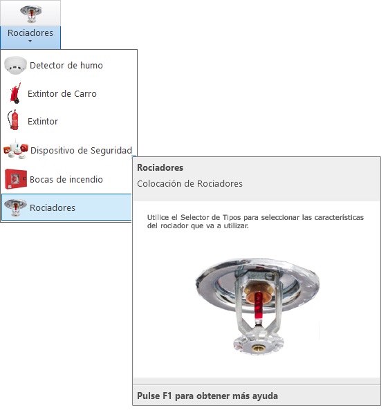 Seleccione desde el selector de tipos la opción de Rociadores, tal como observa en la imagen: