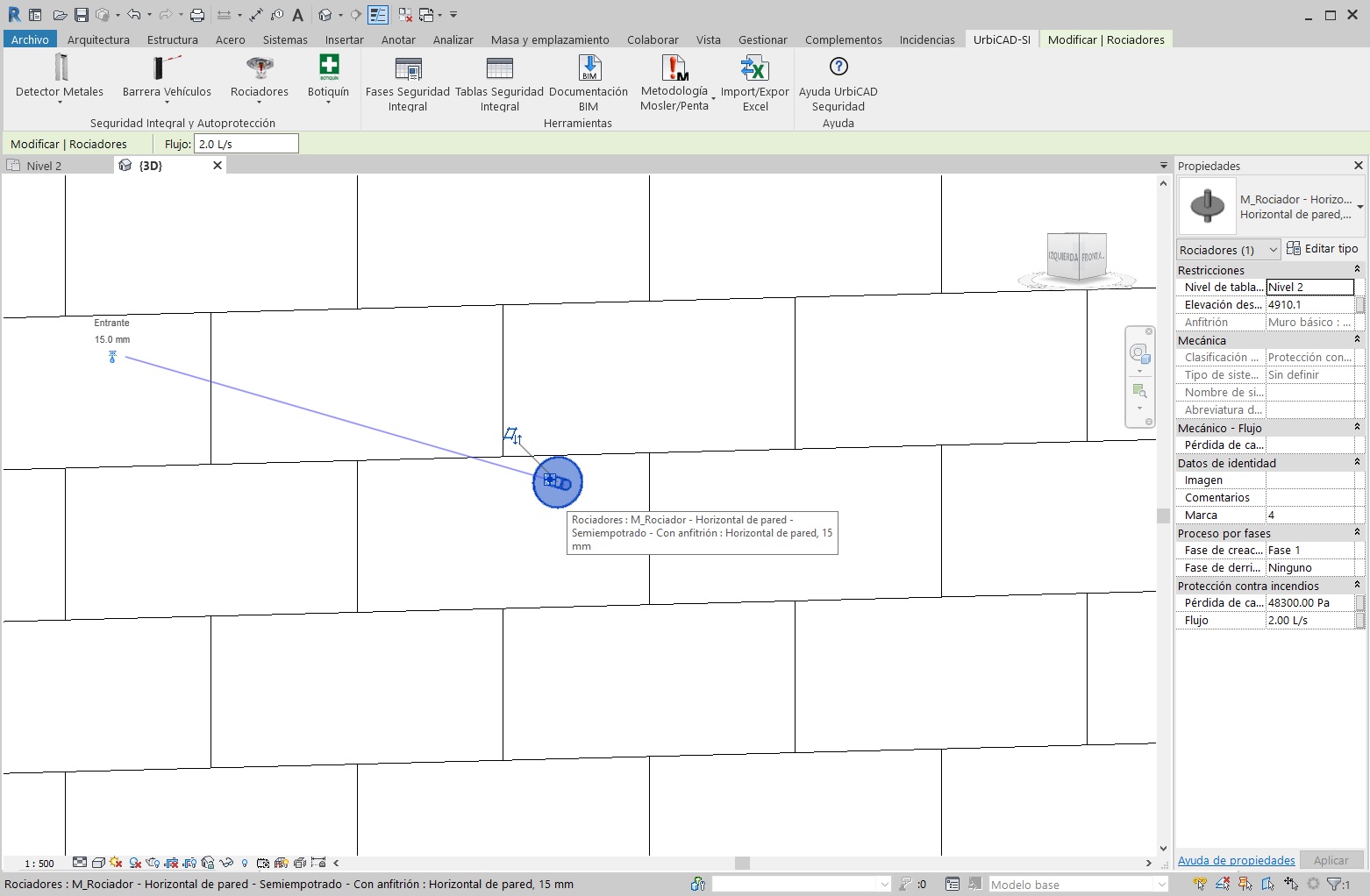 - En el menú de UrbiCAD Seguridad Integral y Autoprotección, haga click en Rociadores (ver imagen anterior).