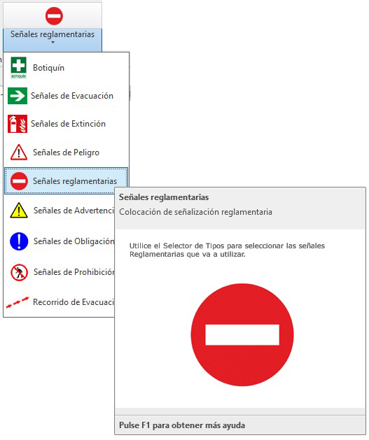 - En el menú de UrbiCAD Seguridad Integral y Autoprotección, haga click en Señales Reglamentarias (ver imagen anterior).