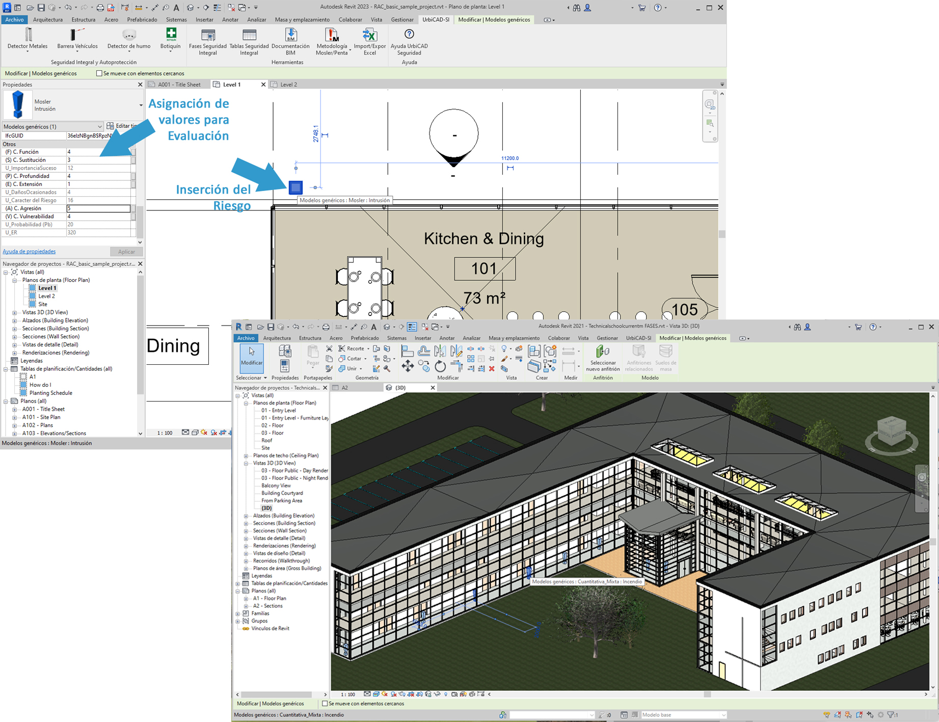 2º Una vez seleccionado, insertamos el icono representativo de dicha metodología en el punto o puntos del plano de planta (se puede insertar igualmente en 3D), posicionando el símbolo del riesgo.
