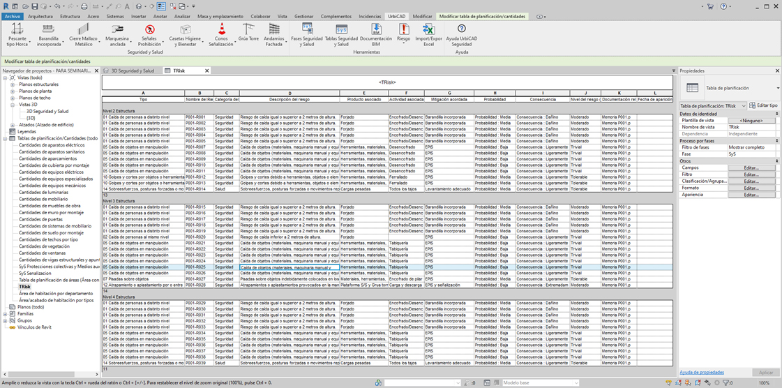 1. Se recomienda desde Revit introducir los valores del parámetro de Nombre del Riesgo.